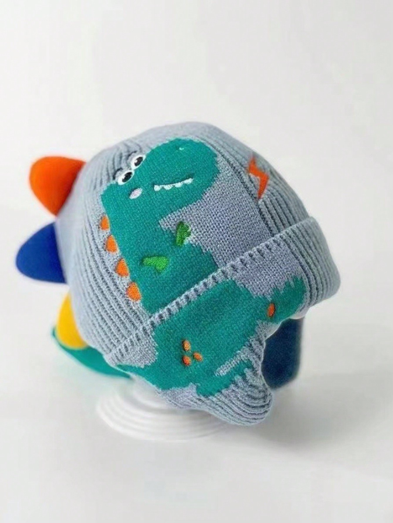 1pc Winter Knitted Hat For Children, Cartoon Dinosaur Pattern With Earmuffs